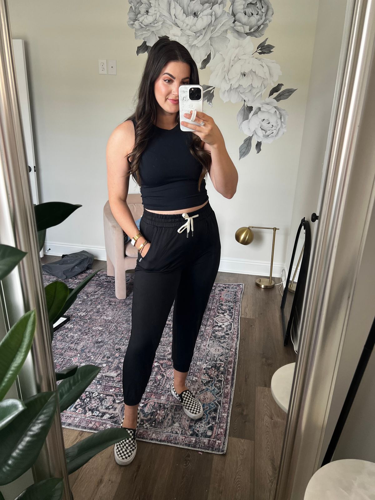 Meet your most essential pant. Made with our signature lightweight Roam® fabric, these joggers are designed to perfectly balance comfort & versatility. Transition from lounging to just about any activity you can come up with in confidence with this high-waisted smoothing fit.